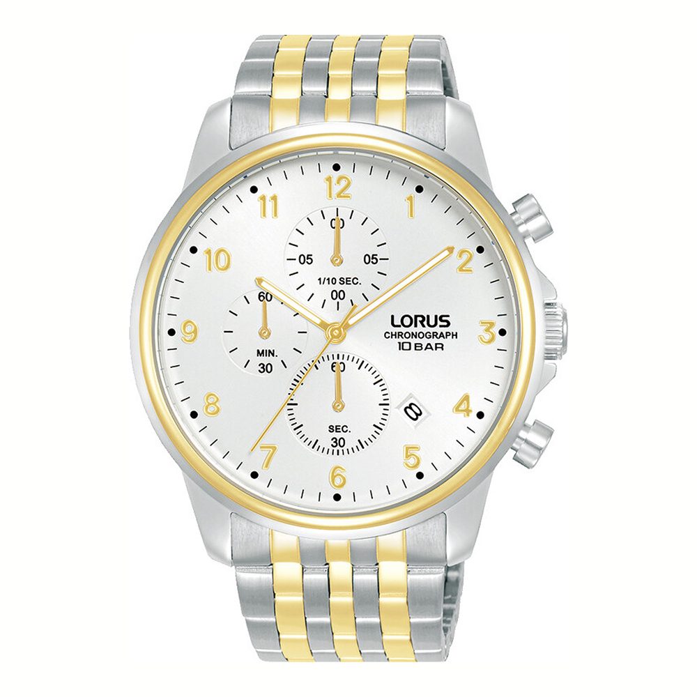 - Edelstahlgehäuse, silber- und goldfarbene Beschichtung, poliert
